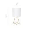 Bring function and fashion to any tabletop in your home with this modern 14" table lamp. The gold metal base showcases an open silhouette complimented by a white fabric drum shade. Perfect size for any room in your home ! Illuminate your living room, bedroom, kids and teen rooms, college dorm, apartment, nursery, or offices with this modern table lamp with contemporary flair!