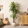 The magic lies in the details: Wire-reinforced branches allow you to gently shape the canopy to create flowing curves or structured silhouettes. The weighted 12-inch white planter provides museum-quality stability, while the seamless artificial plant construction means no messy soil or water spills. Imagine this dracaena tree creating a tropical focal point in your living room, or using a pair to frame your patio door for instant resort-style ambiance. Unlike finicky real plants that drop leaves or attract pests, this fake tree maintains its perfect appearance year-round with just an occasional dusting.