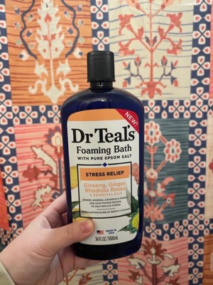 Step into a luxurious stress-reducing bath with Dr Teal’s Ginger & Ginseng Stress Relief Foaming Bath with Pure Epsom Salt. We’ve harnessed the power of ginger, ginseng, and rhodiola rosea to relieve tension from the day. While these essential oils work to calm your mind, Pure Epsom Salt (Magnesium Sulfate) help refresh skin's appearance. For the ultimate self-care routine, pair it with Dr Teal's Stress Relief Epsom Salt Solution. Paraben free, phthalate free, cruelty-free and never tested on animals. Packaging contains 30% recycled content.