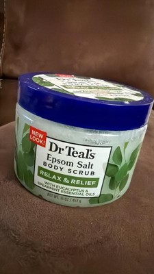 Dr Teals Eucalyptus Epsom Salt Body Scrub is formulated with Pure Epsom Salt, Natural Essential Oils and Minerals to gently exfoliate skin. Relaxing Eucalyptus essential oil soothes the senses, while Shea Butter and Jojoba Oil leave skin soft and moisturized. Massage onto skin in circular motions to slough away rough, dry areas. Great for use in bath or shower for the whole body or as a hand scrub.