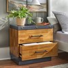 The Drake 2-Drawer Nightstand by Lifestorey is a handsome bedside piece. Modern farmhouse inspired style is reflected in the warm wood veneer and contrasting gray finish. Two drawers provide storage capacity for organizing books, magazines, knickknacks, and other essentials. Thoughtfully detailed with antique brass nail heads and black metal drawer handles. Constructed of solid rubberwood, MDF and acacia veneer, this piece is a perfect addition to any bedroom suite or guestroom.