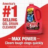 Drano® Max Gel Clog Remover is the #1 Selling Gel Drain Cleaner* and tackles tough clogs in bathroom and kitchen drains. The thick bleach formula in Drano® Max Clog Remover Gel cuts right through standing water, clinging to your toughest clogs to blast them fast. Our sink unclogger works great to remove hair, soap scum, and other greasy clogs.