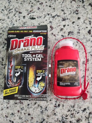 [This review was collected as part of a promotion.] I really liked this product! I like that it was inexpensive and included a snake. Having the snake really takes the diy abilities to another level! I used both on my shower drain, which was a bit clogged with hair. I had some trouble using the snake, since my drain has a grate over it that I couldn't figure out how to remove. It still worked somewhat, but I wasn't able to take it out with whatever was clogging it attached. Thankfully, the drano did the trick. I followed the instructions on the box and poured the whole bottle down the drain, waited 30 minutes, and then rinsed. It works much better now! The snake would have worked great if not for the grate!