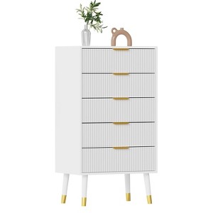 Drawer Dresser, with Gold Metal Handles, Cabinet Organizer, Wood Chest of Drawers for Bedroom, Living Room, Hallway, Entryway, White