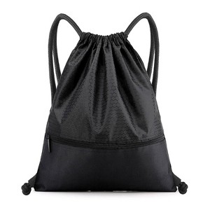Drawstring Backpack Bag, Waterproof Draw String Back Sack with Zip Pocket, (Black, Upgraded) One Size
