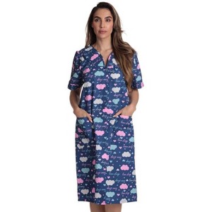 COMPLEMENT YOUR LOUNGEWEAR WITH A TOUCH OF COMFORT Supremely Comfy Our printed and plaid housecoat dusters are the comfiest way to lounge in the house! Simply wear them over your nighty and confidently go about your business while riding on a wave of total comfort. Weve used high quality seersucker fabric, known for its ability to keep you nice and cool even in sweltering weather. And its ability to keep wrinkles at bay; these duster coats never really need any ironing! Yup, you can wear them straight out of the wash and still look clean and crispy. Now thats what you call effortless maintenance. Beautifully Modest Shopping around for a house robe ideal for an older woman? Or simply love being modestly covered up while lounging in the house? Then this is the duster robe for you. With a great length, short sleeves, and a non-revealing neck line, youll feel beautifully confident while at home. And it looks great too! The puckered look of the seersucker fabric creates great texture, combined with your choice of floral, celestial and plaid prints create a lovely effect. Heres why youll love this comfy robe: - Snap front closure makes for remarkably easy wear. - Comes with two patch pockets for a touch of versatility. - Anti-wrinkle seersucker fabric handles beautifully in the wash. - Modest length and design makes them a great gift for Grandma. - Available in sizes ranging from S-3X to fit most body shapes and sizes. Confidently lounge away in our seersucker housecoats and experience what old school comfort truly feels like.