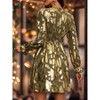 Dresses for Women Sexy Ruched Sparkly Bodycon Long Sleeve Deep V Neck Club Mini Dress for Party Club Night