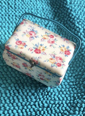 [This review was collected as part of a promotion.] This sewing basket has a beautiful floral design with an easy to open closure. The cute pin cushion fits in the basket and is great for keeping your pins. Thia would make a great gift for any sewer young or old.