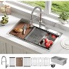 Upgrade your kitchen with this complete drop-in sink set. Made of durable 304 stainless steel, the deep single bowl offers plenty of room for pots and pans. It includes a standard pull-down faucet, drain kit, and all mounting hardware for a straightforward installation. With sound-dampening pads to reduce noise, this sink combines functionality and sleek design for your daily kitchen tasks.
