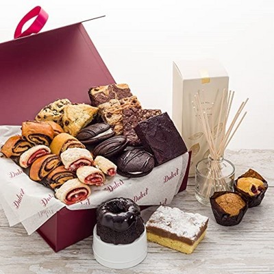 - THE ULTIMATE BAKERY DELIGHT! Need a gift that goes to every occasion? Your search is over! Dulcet’s bakery assortment is what you need! Includes: 1 Chocolate Lava Bunt, 1 Cookies and Cream Cupcake, 2 Chocolate Crumb Cakes, 1 Raspberry Crumb Cake, 4 Assorted Brownies-flavors include: Chocolate Cheese, Chocolate Fudge, Chocolate Chip Blondie and/or Walnut, 2 Chocolate Whoopie Pie, 1 Red Velvet Whoopie Pie, 1 Lb. Assorted Rugelah-flavors include: Raspberry, Apricot, Cinnamon, and/or Chocolate Chip.