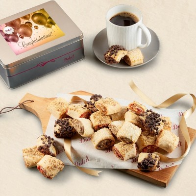 - FOR ALL OCCASIONS: Baked fresh daily in our kosher-certified kitchen, our Rugelah Gift Tin is perfect for any occasion. They make a thoughtful addition to any meal and are a superb choice of gift for family and friends during the holiday season. Also makes a perfect office gift, a unique and tasty gift box!