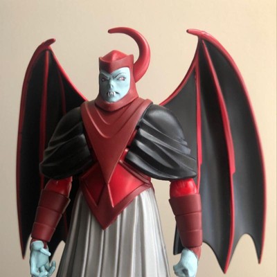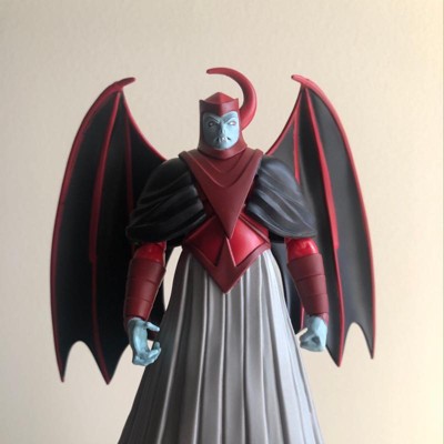 Love the sculpt and quality of plastic of the Venger figure in particular. It’s solid and accurate to the cartoon. The one glaring issue for those who want to pose him is that he has limited articulation at his arms. He has single joined elbows, and no wing articulation at all since it’s a single peg-in piece. You would think, that Hasbro would at least improve arm articulation and reduce leg articulation since the “skirt” already prevents any observable positioning with the legs. Also paint applications to the face vary, in placement. So it’s hit or miss and you have to open the windowless package, and open the paper bags he is packed in to check the paint. Target no longer does exchanges, from my understanding, but simply refunds, if you want to get another one and chance a better or worse paint application. I had to return one. If paint was more carefully applied I’d give it a perfect rating. It displays beautifully however, especially since there’s slim pickins for collectibles featuring this particular Peter Cullens -voiced character from the 80’s —Venger. Plus dungeon master who has articulated arms and swivel head, can keep yoda company on your shelf.