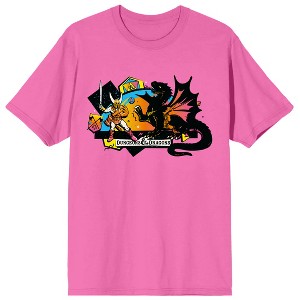 Dungeons & Dragons Warrior And Dragon Men's Neon Pink T-shirt - 1 of 3