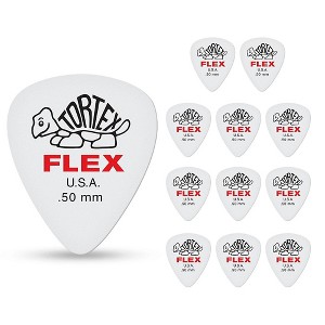 Tortex Flex Picks combine the memory and durability of Tortex with the flexibility and warmth of nylon. Standard Shape, .50mm Gauge.