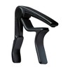 When they made the Dunlop Trigger Curved Guitar Capo they knew sound shouldn't change when put on a capo, and it shouldn't be a 12-step process, either. With the Trigger capo, 'll come through loud, clear, in tune, and in less time. The Dunlop capo is made of aircraft-quality aluminum, with a strong, padded, spring-action grip that can be changed quickly with just a squeeze. Works for both 6- and 12-string guitars. The Trigger Curved Capo features a unique pressure pad that conforms to fingerboard and frets for buzz-free fretting.