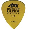 Based off of a coveted vintage tortoiseshell pick in the Dunlop collection, the Ultex Sharp guitar pick has a rigid body tapering into a thinner and sculpted tip for enhanced control and speed. The seamless contoured edge surrounds the pick for more playing surfaces and tones. Engineered of Ultex-the Dunlop Ultex Sharp is virtually indestructible and delivers a crisp tone with quick release attack. Available in .73, .90, 1.0, 1.14, 1.40, and 2.0mm gauges.