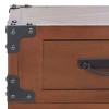 A clever melange of British campaign furniture classics, this Dunston side table is a conversation piece that provides storage and style. Outfitted with steamer trunk corner reinforcements, this pine table is finished in warm brown.