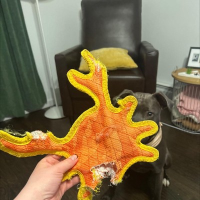 This toy is truly a TOUGH toy to destroy. My Great Pyrenees puppy has gone through so many toys claiming to be ‘tough’, but due to the shape and having such a strong seam, it barely has any damage. We have had this toy for three months now when he can typically destroy something within a few days. 10 out of 10. Would buy again. Highly recommend for an aggressive chewer.