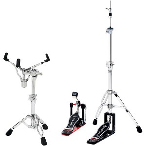 Part of DW's 5000 Series, the DWCP5000PK2 3-piece hardware pack includes the celebrated Accelerator series bass drum pedal, an easy-to-position, 2-leg rotating hi-hat stand and a memory lock-equipped snare drum stand. This is a gig-tough package for professional drummers that struts a lot of cool, player-friendly features, such as a two-way beater and a rubber-grip base (5000AD4), a fine-tooth tilter (5300) and a spring-release footboard (5500TD). 5000AD4 Dual-Chain-Drive Bass Drum Pedal The 5000 series Accelerator cam delivers formidable velocity, yet also maintains dynamic sensitivity for precise kick strokes. A twin advantage of a double-chain drive and a dual-spring rocker work to ensure smooth and responsive playability for all styles and techniques. Like to punch and pummel for explosive bass-drum patterns? The 5000AD4's rubber base will keep the pedal—and kick drum—firmly in place. No matter what type of bass drum like to use, the 5000AD4's tri-pivot toe clamp fastens securely to almost any drum hoop. 5500TD 2-Leg Rotating Hi-hat Stand The two-leg design of the 5500TD leaves room for double-bass drum pedals, but even if use a single pedal, the rotatable legs can swivel into almost any position want for comfort and ease of set up. Integrated memory locks guarantee a precise setup gig after gig, and a spring-release footboard folds up for worry-free transport. If want to change the angle of the bottom hi-hat cymbal, the 5500TD's lateral seat adjustment makes it a snap—even during a performance. 5300 Offset Snare Drum Stand The 5300's offset design is just the thing for getting snare positioned right where want it, and integrated tube-joint memory locks retain preferred setup every time. If ’re picky about the angle of snare head, the fine-tooth tilter allows exacting snare drum adjustments to suit any technique. ’ll never have to worry about perfect positioning becoming undone by forceful playing, because the super stable, double-braced 1-1/8" tripod base guards against tipping and creeping.