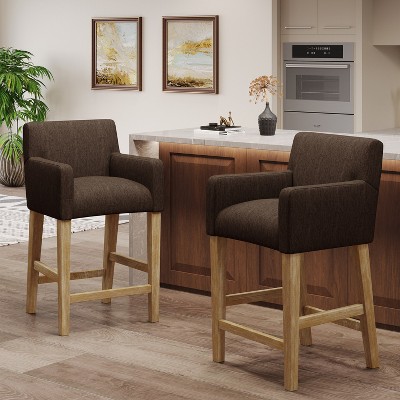 • Counter Stool crafted with Rubberwood, Iron, Linen