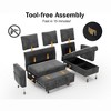 The sectional sleeper sofa comes in 2 separate packages (may arrive on different days). Designed for convenience, it features tool-free assembly, allowing you to complete setup in just 4 easy steps within 10 minutes.