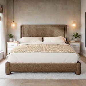 Upgrade your bedroom with the Dyonery Modern Boucle Bed Frame, featuring a soft, cloud-like boucle fabric upholstery and premium foam filling for comfortable support. The curved anti-collision design on the headboard and footboard reduces bumps and injuries, making it safe for kids and adults. Built with sturdy legs, a metal support frame, and solid wood slats, this platform bed ensures stability and quiet sleep. The adjustable headboard accommodates mattresses from 8¨C12 inches and adds a touch of modern elegance to your room. Assembly is quick and easy with included tools, velcro-connected slats, and clear instructions, making setup a breeze.