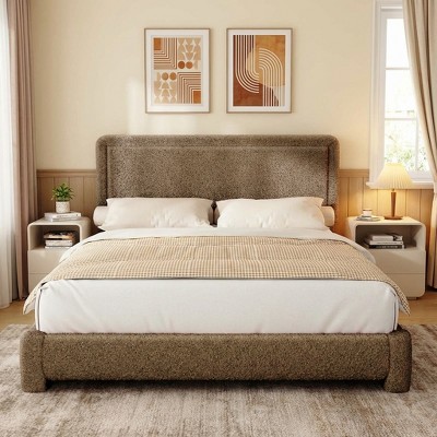 Dyonery Boucle Upholstered Platform Bed Frame King Size, Adjustable Headboard, Soft Rounded Corners, No Box Spring Required, Black