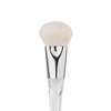 A complexion brush that applies foundation, blush, bronzer, and highlighter in sheer layers for a buildable, airbrushed coverage. The custom designed triangular handle provides ultimate control and luxuriously soft, cruelty-free white fiber hairs help show exact placement of makeup on the brush for optimal amount of product use for precise and even application.