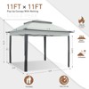 - EXTENDED EAVES: With gracefully extended eaves, this canopy provides an abundance of shade, maximizing your comfort under its expansive 121-square-foot shelter. This generous space safeguards up to 10 people from the relentless sun and unexpected rain showers