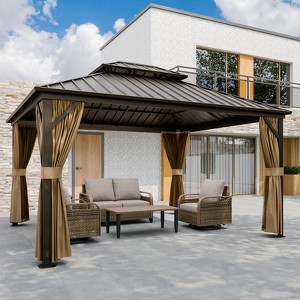 EAGLE PEAK Aluminum Double Hardtop Gazebo with Curtains and Netting