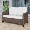 - CLASSIC DESIGN: This stylish 2-seat rattan loveseat enhances any outdoor space. Made with easy-to-clean wicker and featuring removable, machine-washable cushion covers, it offers lasting comfort and low-maintenance convenience