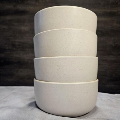 [This review was collected as part of a promotion.] This is a weighty dinnerware set with a minimalist aesthetic that includes dinner plates (2.07 lb each), salad plates (1.15 lb each), and bowls (1.41 lb each). The White Speckled colorway features dishes with a bone white background, subtle (i.e., tiny) dark brown specks and rimmed with matte edging that I can see being a universal neutral that will work with almost any decor or color palette. A couple of the bowls had uneven glazing, which could add a rustic "handmade" appeal or be flaws that you can't get past, depending on how you feel about the company's obvious lack of quality control. All the pieces are stackable but don't nest into each other perfectly; because they're also relatively bulky in size, as a set, they will take up considerable cupboard space — the bowls, especially. Overall, I found the weight of them something that will make me think twice about using them for everyday meals and something I reach for on special occasions only.