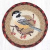 Earth Rugs Round Chickadee Coaster – 7"x7" Braided Jute, Hand-Stenciled Winter Bird Design, Rustic Nature Accent