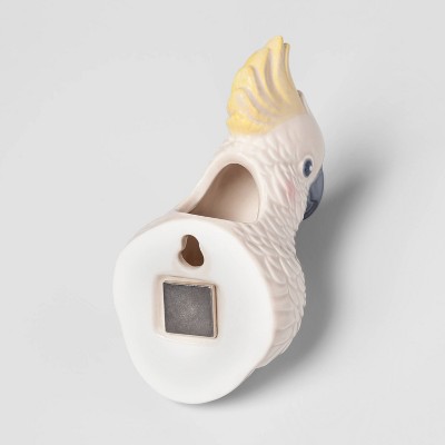 Bring beauty to your indoor or outdoor space with this pretty Earthenware Cockatoo Wall Planter from Opalhouse™. Crafted from ceramic, this durable wall-mounted planter will make the perfect addition to your decor. Sporting a lovely cockatoo face at front with its beautiful yellow crest on top, this wall planter makes the perfect display for your favorite plant. The built-in cut-out detailing allows for quick and easy hanging, while the wide opening at back houses your lush plant with ease, adding a spot of green to your wall. Pair with coordinating animal-themed accessories for chic, cohesive appeal.