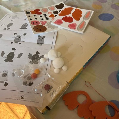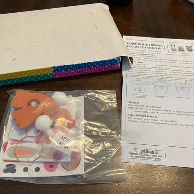 [This review was collected as part of a promotion.] This is a really cute kit, too make your Easter eggs into farm animals. It came with directions and the box turned into an egg holder. It also came with the color tabs, a metal egg dipper, and then of course the parts needed to make various farm animals like pom-poms, eyes, stickers, and paper cut outs.