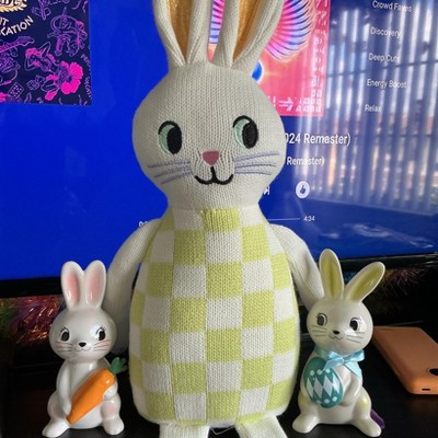 Super fun rabbit! Bigger than expected, sits upright well, and accents my other Target Easter decor. Not too childish or cuestsy. Love it.