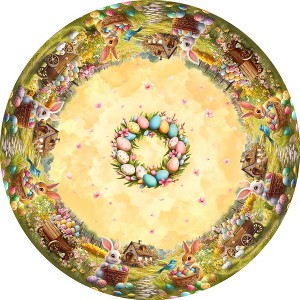 Easter Tablecloth Rectangle, Easter Table Cloth Bunny Eggs Tablecloths Round for Party Home Dinner Decor apricot 60 inch