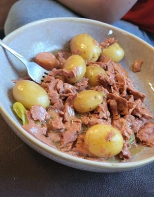 Inedible. Looked, smelled, and tasted like canned dog food. I had purchased the “chicken” as well and threw it away without even trying it.