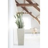 The Ecopots Rotterdam High is a tall, square flowerpot whose design makes it a popular choice for accentuating an entrance, hallway or corridor. The square, vertical design gives the Ecopots Rotterdam High a striking appearance that is both timeless and space-saving. This pot looks wonderful in places where space is limited, such as narrow corridors or doorways. The format lends your entrance or hallway instant grandeur, whether indoors or out. This tall flowerpot is great for displaying a wide variety of plants, ranging from ornamental grasses to flowering shrubs. The pot's height provides plenty of space for the roots, helping your plants stay healthy. By filling the pot with gel crystals before adding the plant, you can create a good balance and ideal soil culture for the plant. The flowerpot comes available with matching saucer (sold separately) which provides a tidy and stable base for your pot; while also helping you avoid over-watering your plants. The saucer is designed to aesthetically complement the pot, enhancing the already beautiful decor.