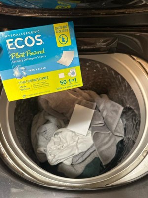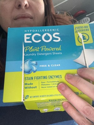 Formulated to provide you with amazing results and always dermatologist tested, ECOS dissolvable laundry sheets are plant powered, effective AND hypoallergenic, leaving your clothes looking cleaner and feeling softer than ever."