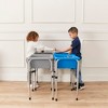 The ECR4Kids 4-Station Sand and Water Table is a versatile sensory table with bins and translucent lids designed to enhance hands-on learning and collaborative play experiences for toddlers and preschoolers. This durable plastic sensory table for toddlers offers two spacious open-area tubs allowing children to engage in sensory learning through tactile exploration. The sand and water activity table provides a dedicated space for water play, kinetic sand, and various sensory materials. The secure lid keeps the contents protected, making it ideal for both indoor and outdoor use. Whether you’re a teacher looking to create an engaging classroom space or a homeschool parent seeking interactive learning opportunities, this sensory table is a perfect addition to your in-home learning space. Promote fine motor skill development, social interaction and encourage imaginative play. The adjustable design of the water table can be set up at three different heights, catering to children of varying sizes. The sturdy legs with non-slip feet have additional fasteners to ensure stability during lively play sessions. The sensory bins provide a convenient solution for easy clean-up. Simply remove bins and curved edges allow for hassle-free maintenance, ensuring a clean and inviting play area.