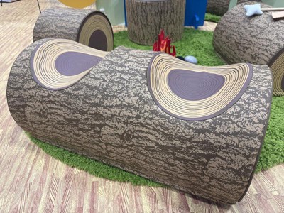The set of tree log seats and stump stools offer a great flexible seating option for the classroom while bringing a touch of nature indoors. Love the little pretend campfire too!