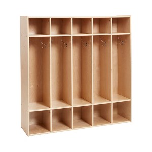 Maximize space and keep your room organized and clutter-free with the ECR4Kids Streamline 5-Section Coat Locker. The wooden locker features five long compartments with ten double coat hangers for sweaters, toddler backpacks, and umbrellas. Give children their own separate cubby storage to keep art projects, homework, and personal belongings organized. Pair with ECR4Kids Scoop Front Storage Bins to keep little things contained and off the floor; bins are sold separately. Use in a children’s bedroom to organize dress-up clothes, costumes, accessories, hats, gloves, and more. The low-profile open-face shelves encourage children to care for their belongings and clean up independently. Constructed from sustainably harvested birch plywood with a durable finish sealing the wood surface and resisting scratching. A UV inhibitor helps furniture resist ultraviolet light and yellowing. Natural birch plywood is extremely durable and will hold up to everyday use in a daycare, or preschool, and is great for the home. Combine the Montessori storage with other ECR4Kids Birch Collection furniture pieces to complete the space.