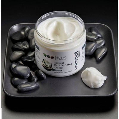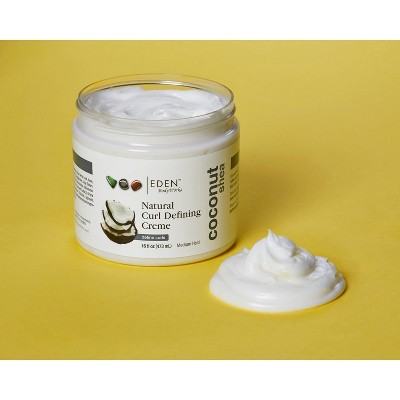 Looking for optimal curl definition? Coconut Shea Curl Defining Creme from EDEN BodyWorks is a cruelty-free, medium-hold moisturizing solution that provides a soft, bouncy finish. It's a thick styling crème offering humidity resistance and frizz control to help maintain curl and wave separation and definition. Coconut Oil and Shea Butter provide nutrients like Vitamin E, that help to strengthen the hair and seal in hydration. It is ideal for wash and go curly or stretched styles, on medium to thick textures, across a variety of curl types. It won't leave the hair feeling greasy, crunchy or flaky, and an added bonus - it has a light, tropical scent. For best results, apply to dry or damp hair. Finger comb product through the hair until the desired curl definition is achieved. To finish, diffuse or air dry.