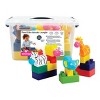 These construction toys are perfect for encouraging children to shape their environments! Ideal for encouraging color recognition, fine motor skills, and hand-eye coordination. This building set is also key in introducing cause and effect concepts to children early on. Building blocks are made of pliable, lightweight foam assist in providing play that is rewarding, safe, and imaginative. Includes 24 pieces – 20 blocks, 4 animals.