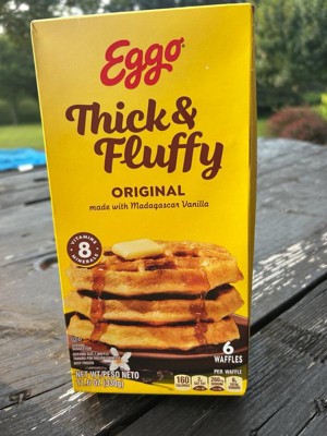Wake up and greet the day with the feel-good taste of Eggo Thick and Fluffy Original waffles. Crafted with delicious ingredients, our waffles are a perfect balance of crispy, fluffy goodness. Convenient and easy to prepare, Eggo Thick and Fluffy Original waffles made with Madagascar vanilla bring warmth to busy mornings. With no artificial colors and flavors, our waffles also provide a good source of 8 vitamins and minerals; Great for families and individuals, these rich waffles are made to enjoy as a stand-alone breakfast treat. Try them with your favorite morning toppings like butter and syrup, jellies and preserves, and whipped cream. Thinking of taking a turn for the savory? Go ahead and try them with fried chicken, bacon, or sausage, or combine for a delicious waffle sandwich. The scrumptious possibilities are endless! They're so delicious you just can't L'Eggo!