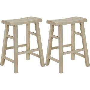eHemco Heavy-Duty Solid Wood Saddle Seat Kitchen Counter Height Barstools, 24 Inches, Set of 2