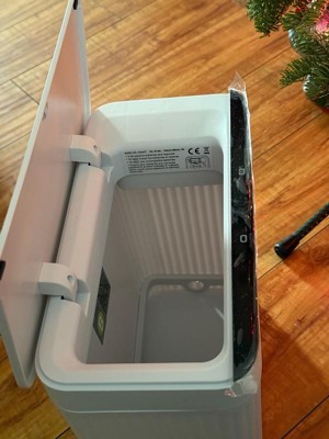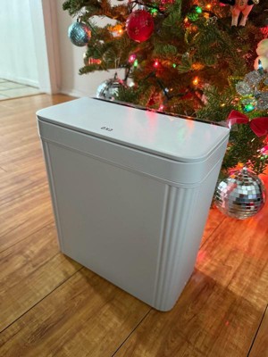 [This review was collected as part of a promotion.] This is such a nice little trash can! I’ve been using it in my office for paper trash. It’s really nice to just wave over it and it opens. It’s very quiet and surprisingly holds quite a bit for its size!