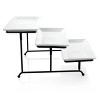 Take serving to the next level with the Elama 3 Tier Rectangular Plate Porcelain Serveware Set. This three tiered set has a clean modern design that will fit perfectly with any home decor and place setting. Serve a different app on each tier or use for confections after your guests have had their fill! Constructed with a sturdy metal rack that holds three porcelain serving trays snugly. Trays are set at an incline for easy access to each tray. This serving set is perfect for parties or for every day countertop storage use!