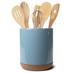 Elanze Designs Glossy X-Large Ceramic Stoneware Cork Bottom Kitchen Utensil Holder, Sky Blue